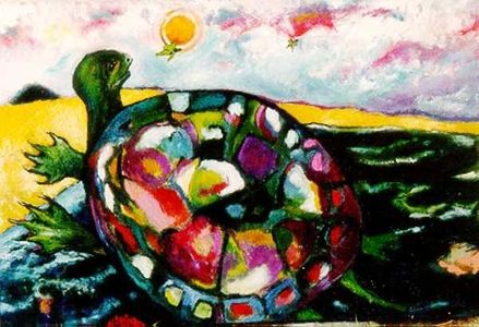 The Vegetarian of the Dinosaur family . Painted when Living in the Milk Bottle in Richmond , Virginia.